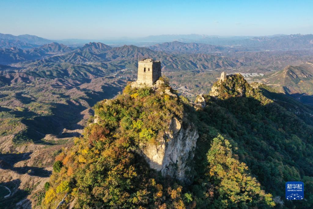 位于司馬臺長(cháng)城東端的“望京樓”(無(wú)人機照片,10月15日攝)。