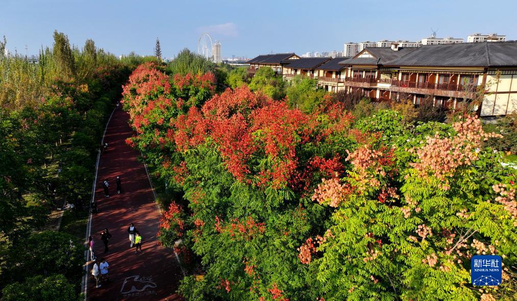 金秋時(shí)節,陜西西咸新區灃河兩岸秋意漸濃。暖陽(yáng)下,斑斕的樹(shù)木,碧藍的晴空,巍峨的秦嶺,共同繪就出一幅絢爛秋景。