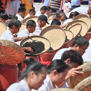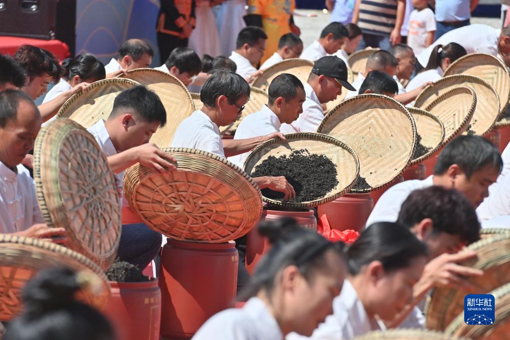 10月15日,在梧州市蒼梧縣六堡鎮六堡茶文化廣場(chǎng),當地制茶人進(jìn)行封茶儀式。