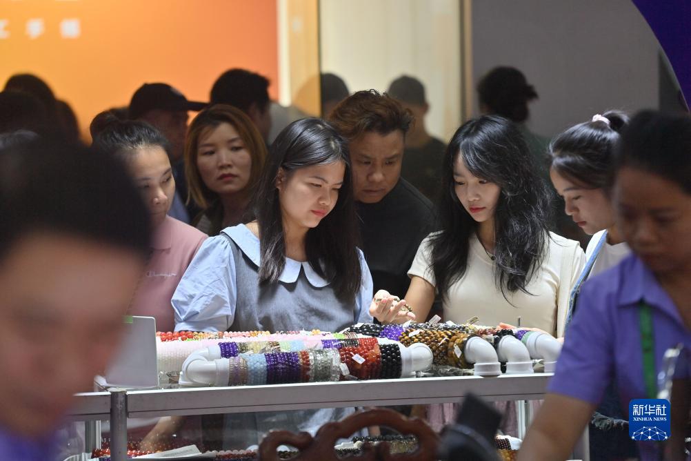 10月15日,在梧州市六堡茶城,觀(guān)眾選購飾品。