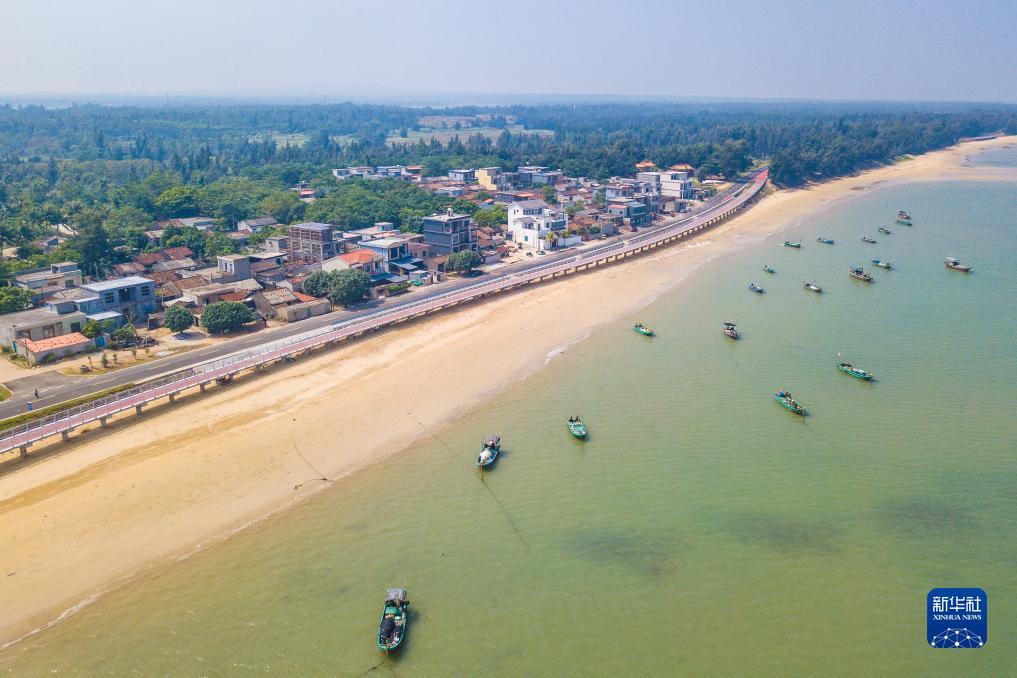 10月15日拍攝的海南環(huán)島旅游公路臨高段景色(無(wú)人機照片)。