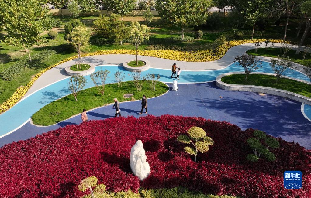 10月15日,市民在唐山市海港經(jīng)濟開(kāi)發(fā)區一處街角公園休閑鍛煉(無(wú)人機照片)。