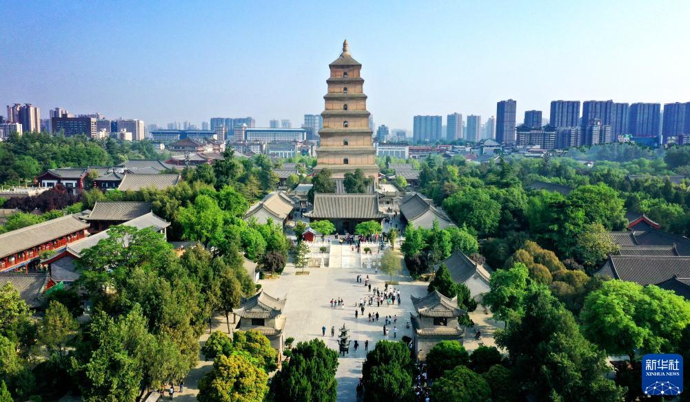 這是西安大雁塔(4月19日攝,無(wú)人機照片)。