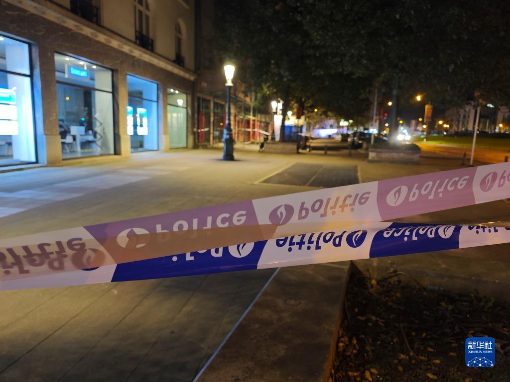 10月16日,在比利時(shí)布魯塞爾,警方在槍擊事件現場(chǎng)警戒。