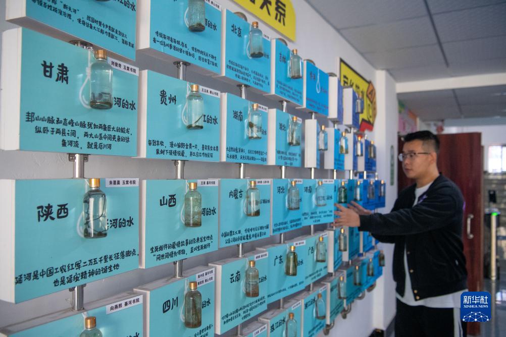 重慶移通學(xué)院“綦河書(shū)院”的鄉水情長(cháng)展示廳內展示了學(xué)生從各自家鄉帶來(lái)的水(10月11日攝)。