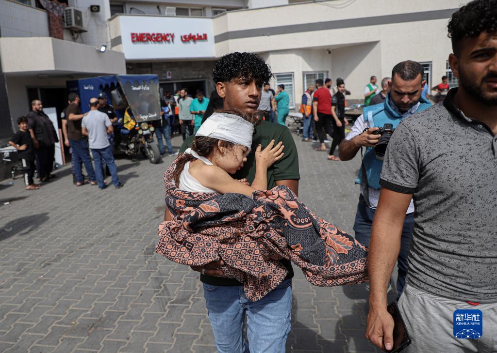 10月17日,在加沙城的一家醫院,一名男子運送受傷兒童。
