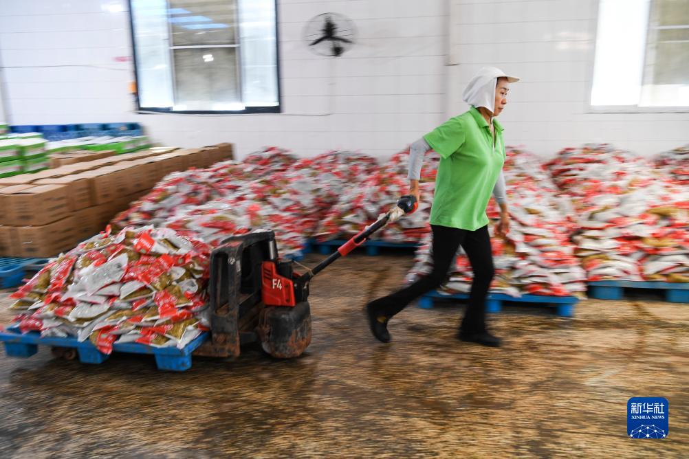 10月16日,重慶市涪陵綠陵實(shí)業(yè)有限公司工作人員在運送榨菜產(chǎn)品。