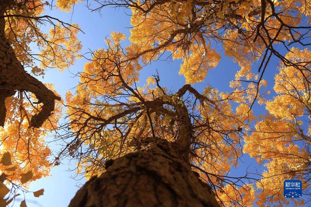 金秋十月,位于三危山下的甘肅省敦煌市莫高鎮的胡楊林被秋色潤染,迎來(lái)一年中的最佳觀(guān)賞期。金色胡楊在陽(yáng)光的照射下,美不勝收。