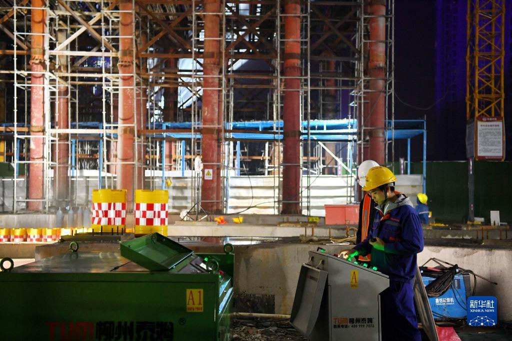 10月18日,施工人員在轉體現場(chǎng)作業(yè)。