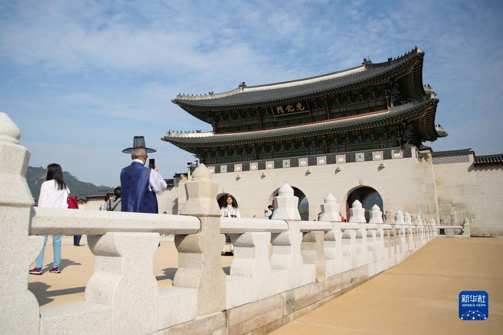 10月18日,游客在韓國首爾光化門(mén)參觀(guān)拍照。