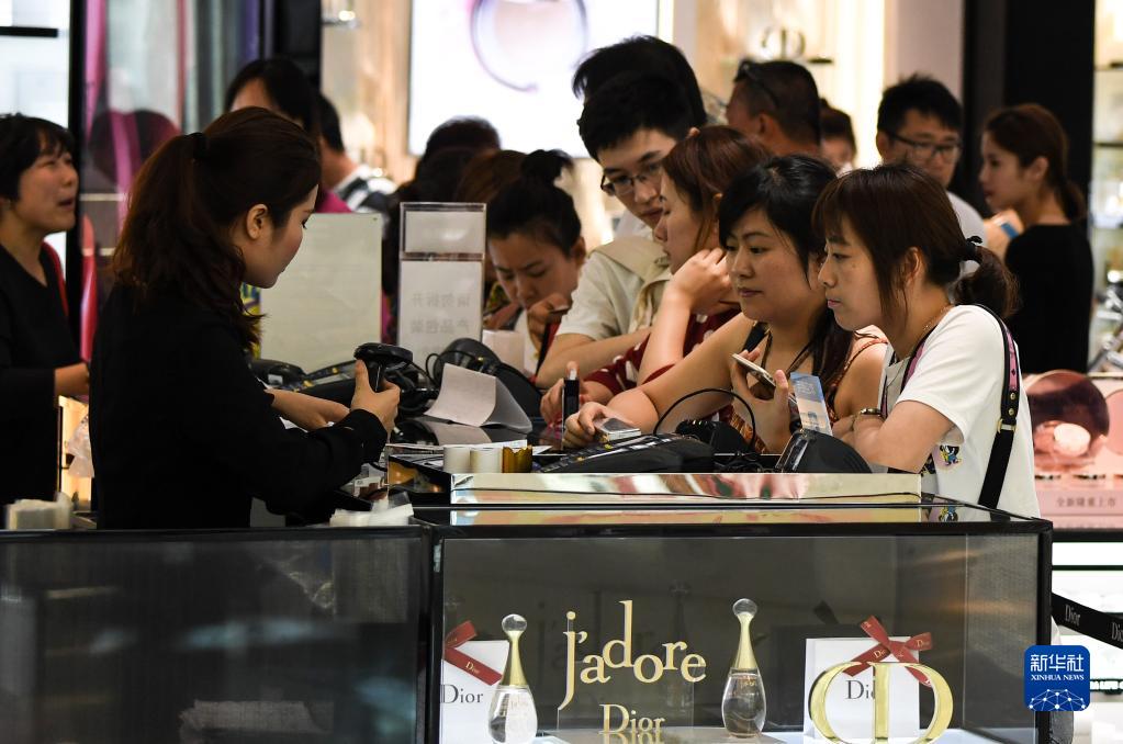 游客在三亞國際免稅城排隊付款(2016年11月28日)。