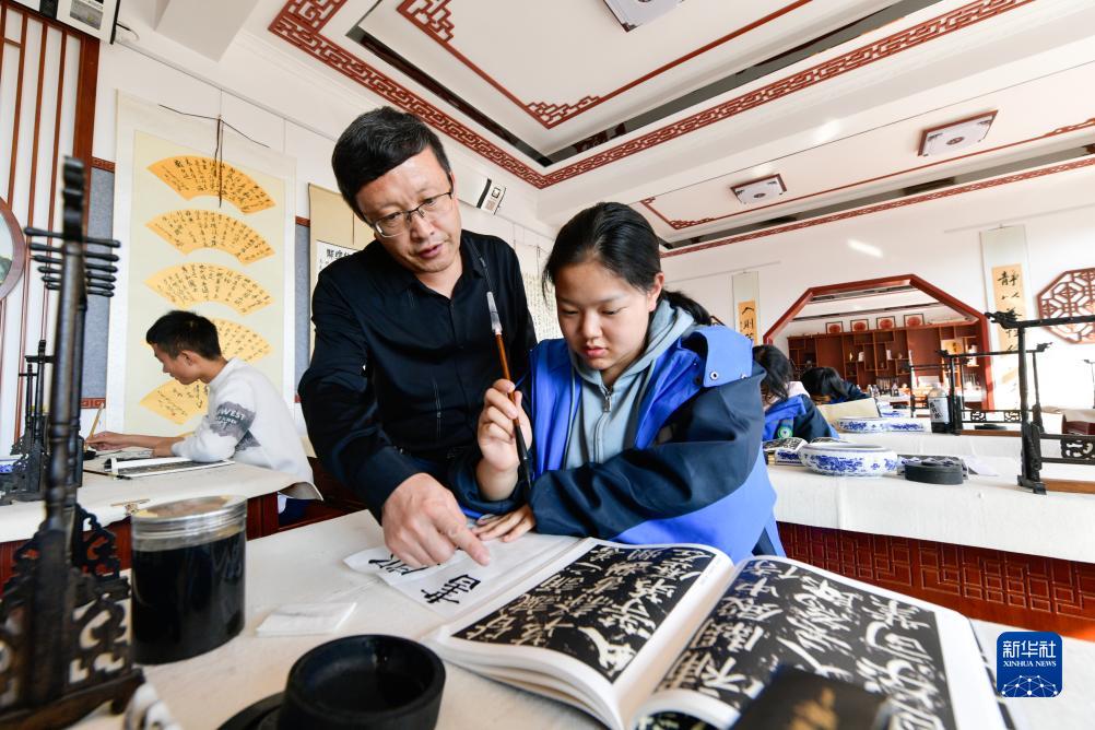 10月16日,蘭州新區高級中學(xué)的學(xué)生在上書(shū)法課。