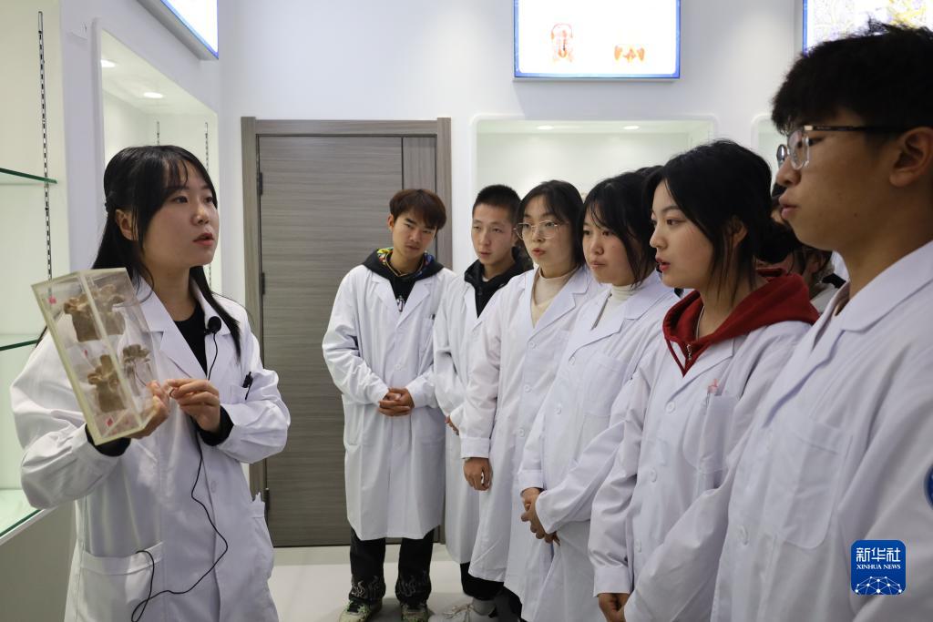 10月17日,在甘肅省蘭州新區科教園區,甘肅省衛生職業(yè)學(xué)院的學(xué)生在人體生命科學(xué)館進(jìn)行觀(guān)摩課程。