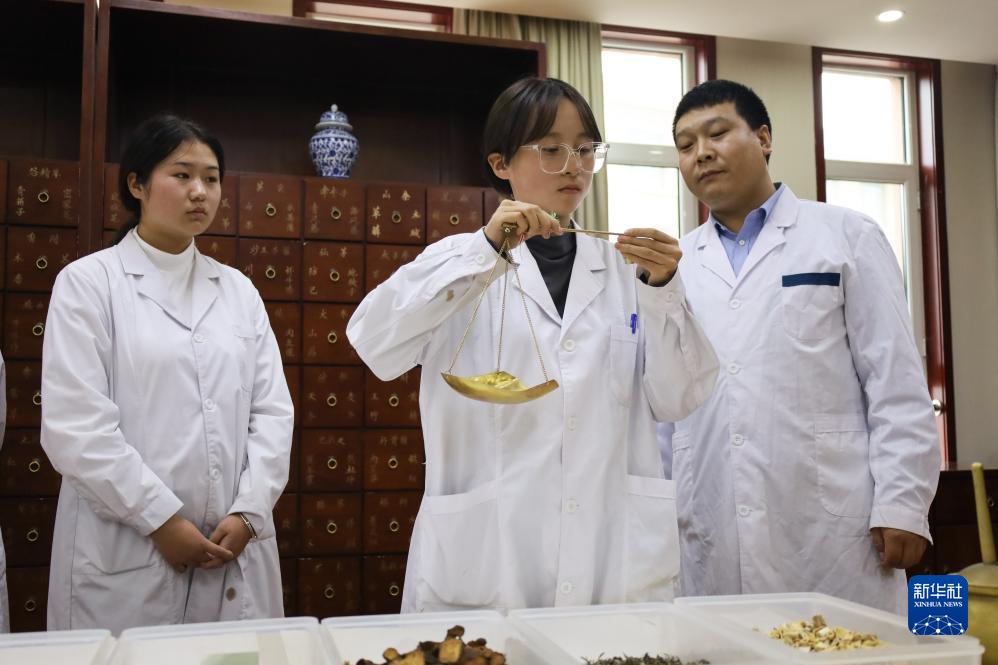 10月17日,在甘肅省蘭州新區科教園區,甘肅省衛生職業(yè)學(xué)院中醫藥學(xué)院的學(xué)生在中藥調劑實(shí)訓室進(jìn)行實(shí)訓課程。