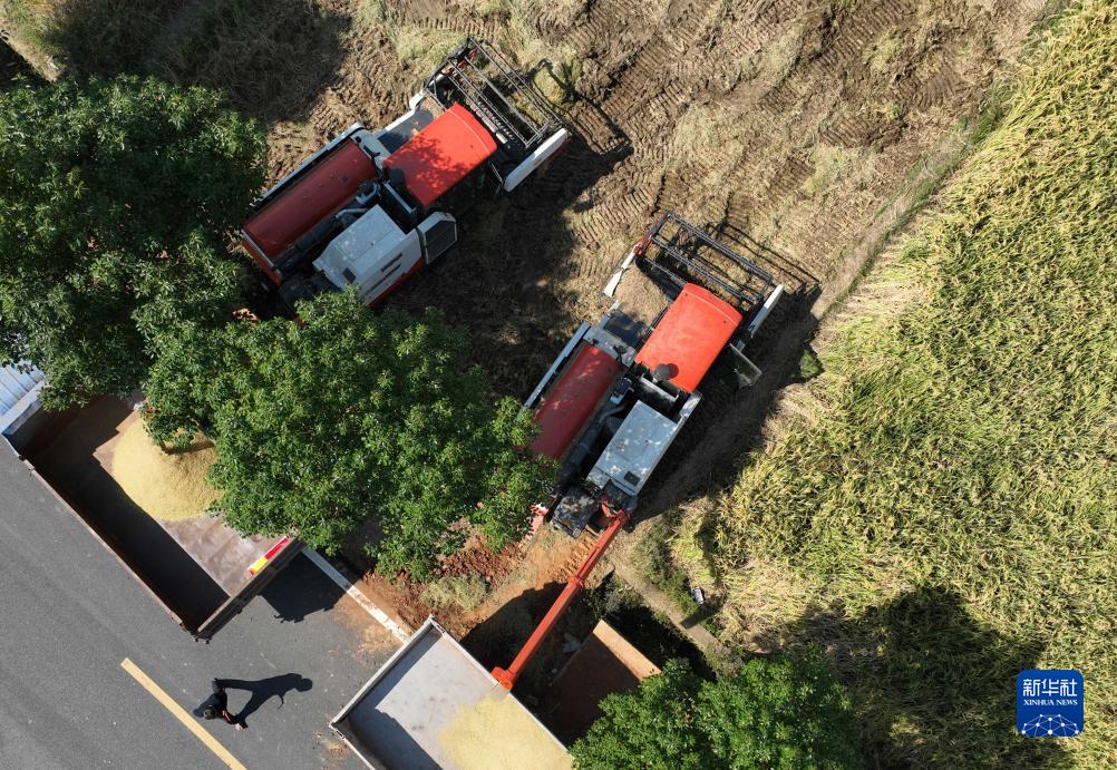 入秋以來(lái),湖南各地晚稻陸續成熟,農民抓住好天氣搶收晾曬。