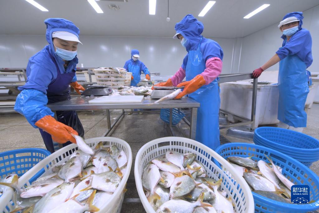 10月17日,位于中印尼“兩國雙園”的福建淼天匯食品有限公司員工在挑選準備出口到印尼的魚(yú)產(chǎn)品。