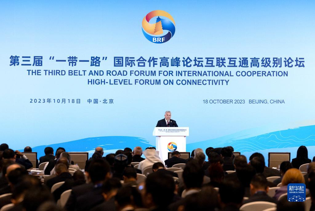 10月18日,第三屆“一帶一路”國際合作高峰論壇在北京舉辦高級別論壇,嘉賓圍繞互聯(lián)互通、綠色發(fā)展、數字經(jīng)濟主題進(jìn)行深入交流。這是互聯(lián)互通高級別論壇現場(chǎng)。