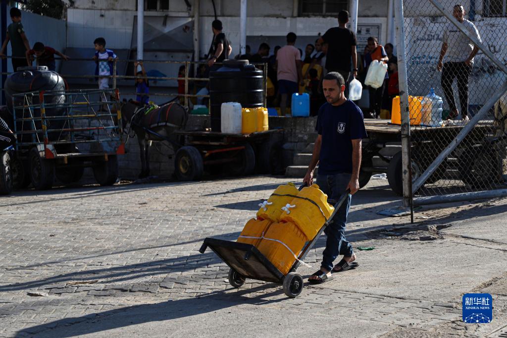 10月18日,在加沙地帶南部城市汗尤尼斯,一名男子運送生活用水。