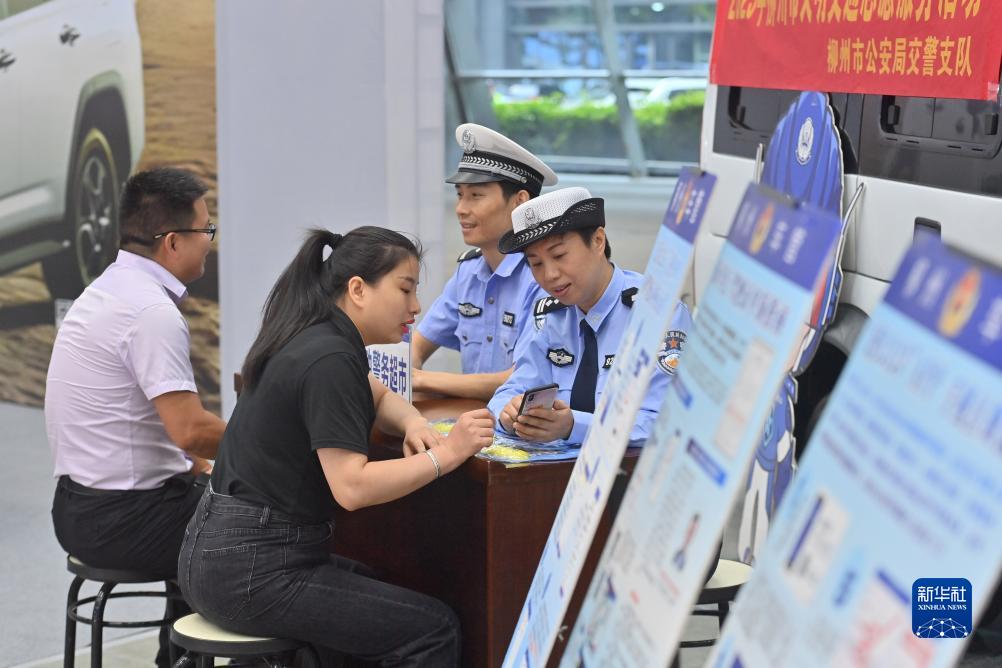 10月19日,在柳州市國際會(huì )展中心,市民在“流動(dòng)警務(wù)超市”咨詢(xún)、辦理業(yè)務(wù)。