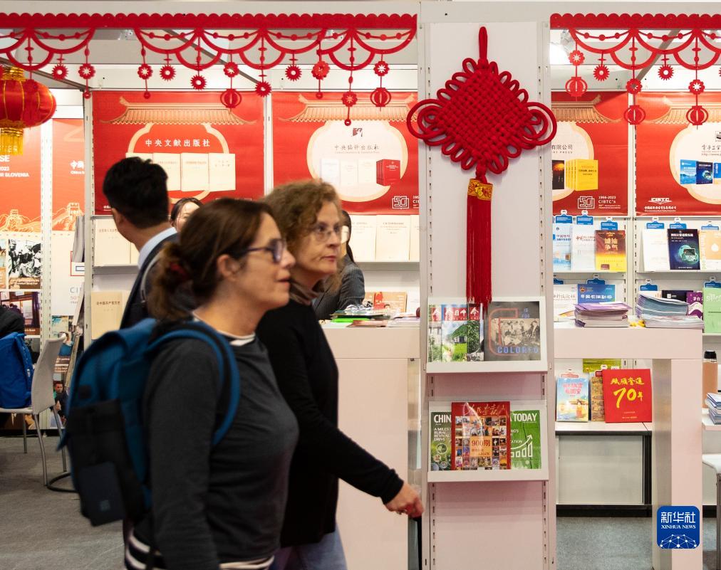 10月18日,人們走過(guò)德國法蘭克福書(shū)展中國展區。
