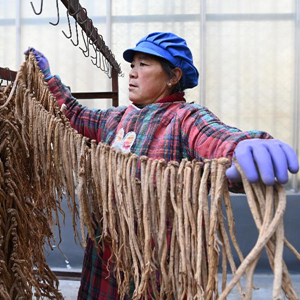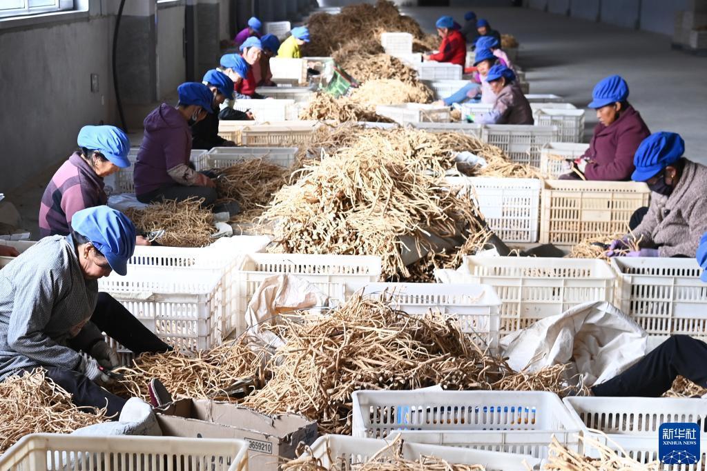 金秋時(shí)節,甘肅省定西市岷縣的黨參、黃芪等中藥材陸續豐收,當地中藥材企業(yè)組織工人加工晾曬。岷縣位于甘肅省南部,是西北中藥材主產(chǎn)區之一,全縣中藥材種植面積65萬(wàn)畝左右。