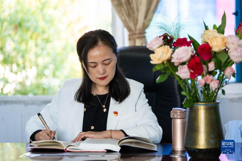 10月18日,常德市桃源特殊教育學(xué)校校長(cháng)彭敏在辦公室整理筆記。