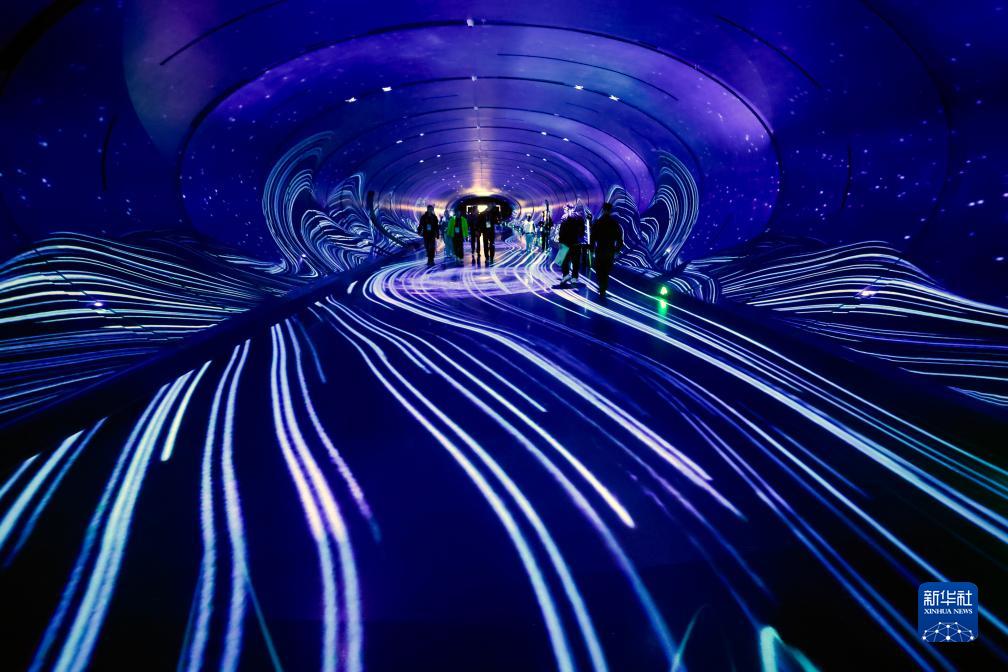 10月18日,在第81屆世界科幻大會(huì )主場(chǎng)館——成都科幻館內,人們走在“時(shí)空隧道”內。