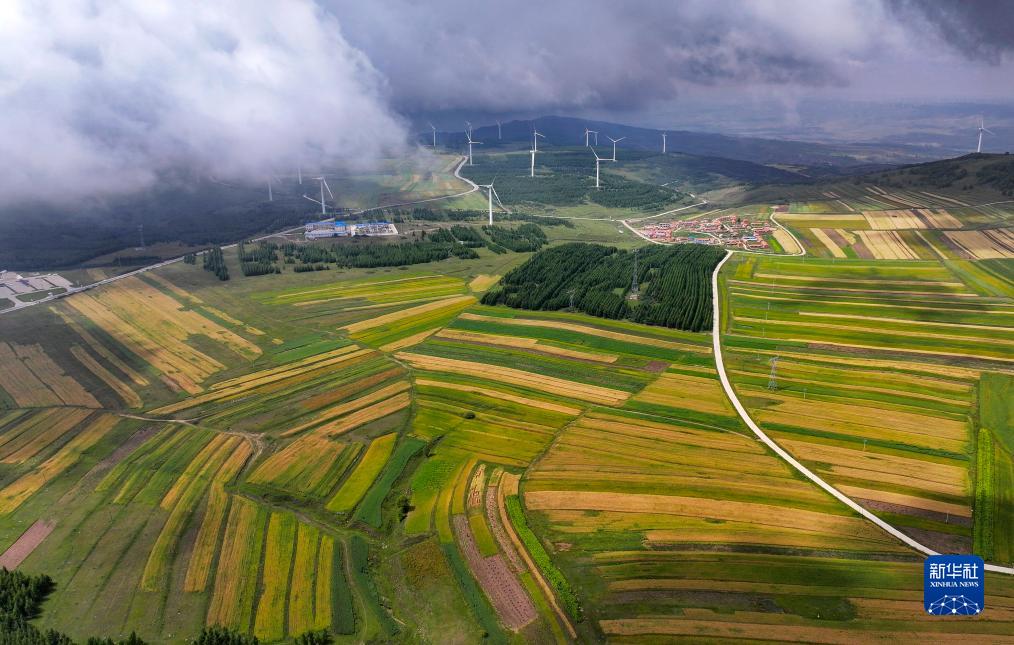 這是8月27日在河北省尚義縣拍攝的農田景色(無(wú)人機照片)。