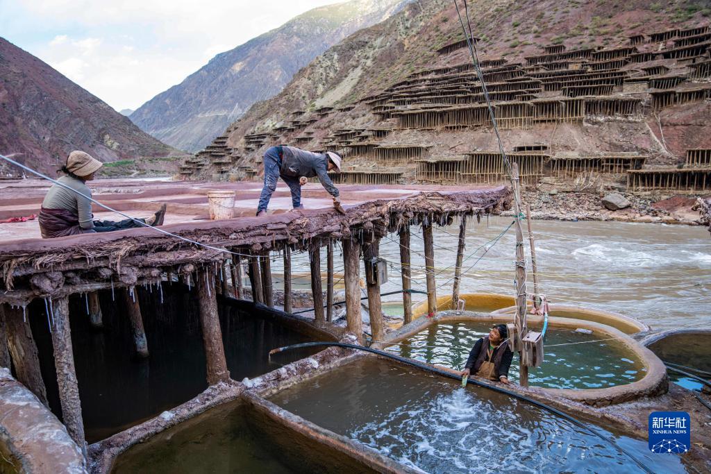西藏昌都市芒康縣納西民族鄉位于瀾滄江畔,當地從唐代開(kāi)始制鹽,距今已延續1300余年。鹽田在瀾滄江兩岸依山而建,由多根木柱搭架,架上用透水性強的泥土鋪成平面夯實(shí)。當地村民仍保持著(zhù)原始的手工曬鹽方式,他們從瀾滄江畔的鹽井、鹽池中取出鹵水倒入鹽田,經(jīng)陽(yáng)光蒸曬、風(fēng)干,結晶成鹽。遠遠望去,鹽田錯落有致,景色奇美。