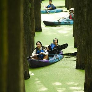 金秋時(shí)節,浙江杭州臨安青山湖近百畝池杉和落羽杉混交林呈現“抹茶森林”景觀(guān),引得大批游客前來(lái)泛舟、漫步觀(guān)光。這片浸沒(méi)于水中的森林每到秋季就會(huì )鋪滿(mǎn)浮萍,浪漫景觀(guān)宛如“綠野仙蹤”。