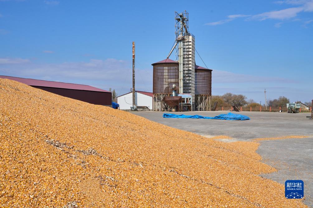 10月22日,在俄羅斯遠東城市烏蘇里斯克,收割的玉米正在等待被送入干燥塔處理。