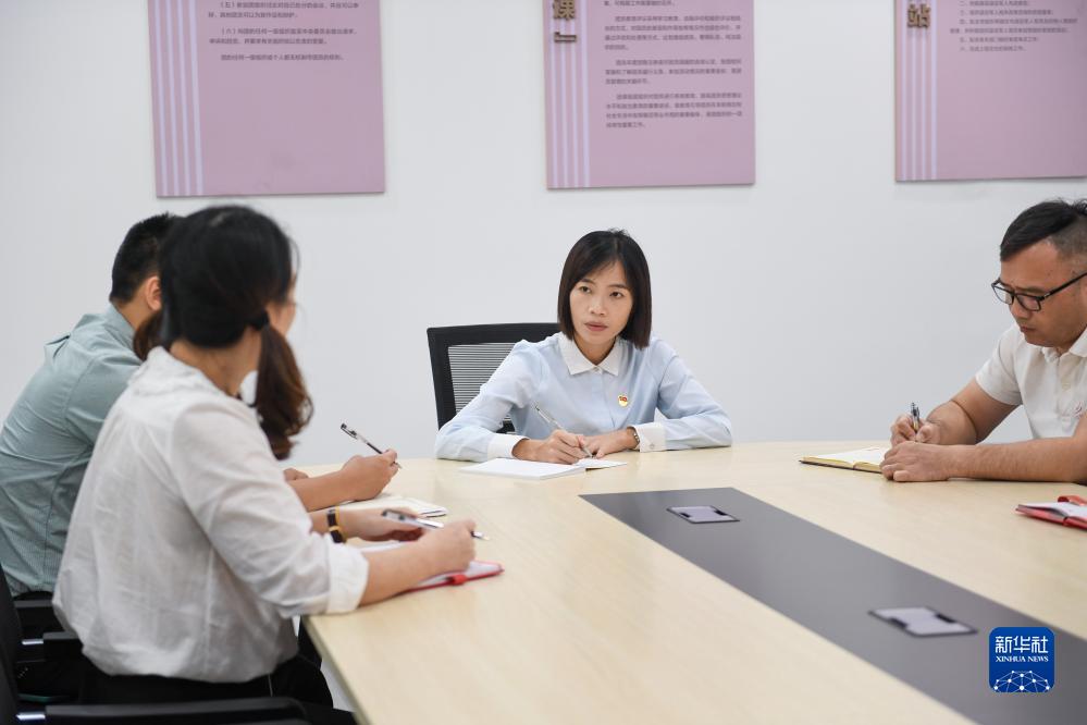 陸秀興(中)參加古灶村“兩委”班子會(huì )議(10月17日攝)。
