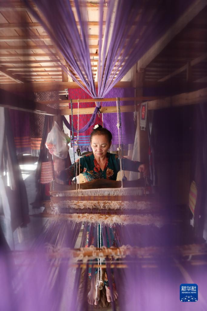 10月18日,云南省景洪市勐罕鎮曼聽(tīng)村傣族婦女在非遺展示區制作傣錦。