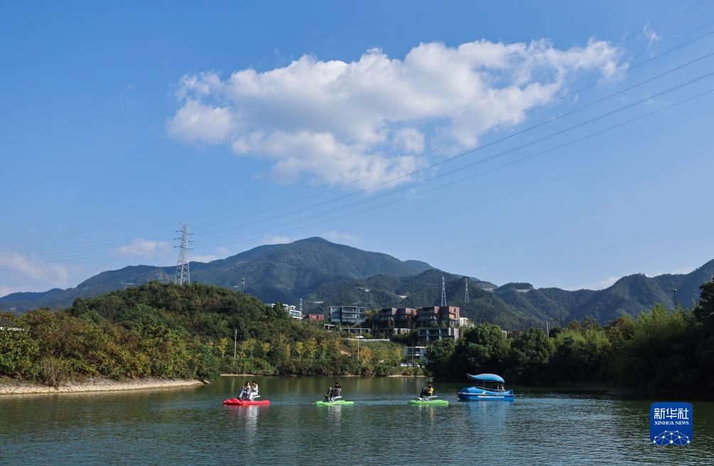 10月23日,游客在建德市楊村橋鎮嶺源樂(lè )活島休閑基地體驗水上運動(dòng)項目。