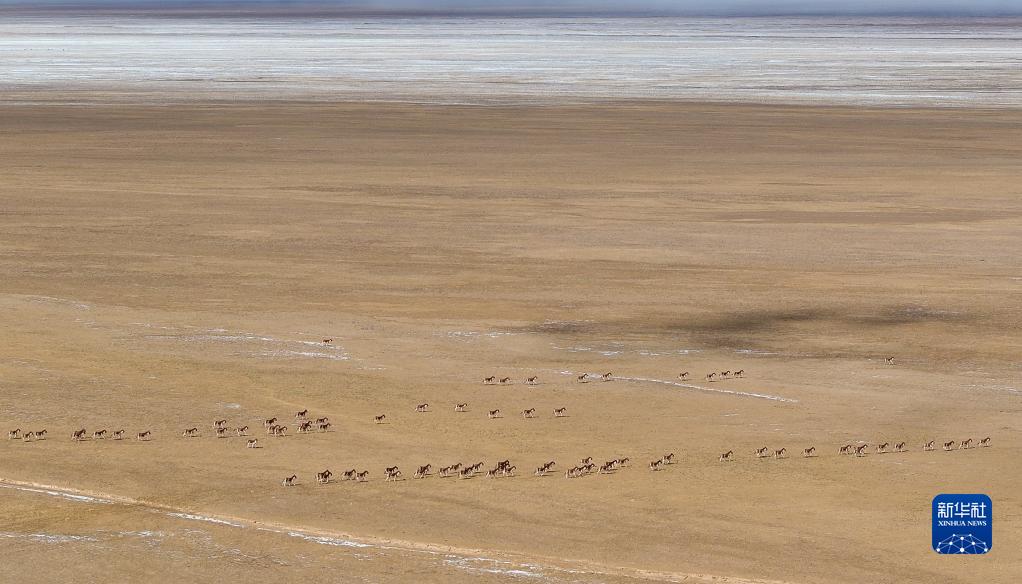 10月16日,在阿爾金山國家級自然保護區,藏野驢在草原上奔馳(無(wú)人機照片)。