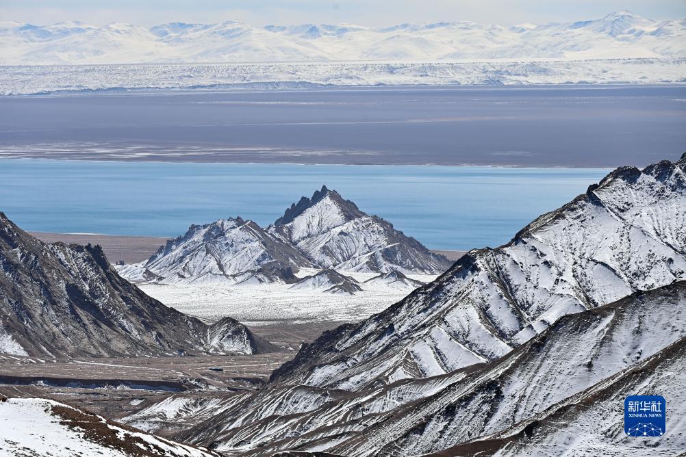 10月18日在阿爾金山國家級自然保護區拍攝的山峰和阿雅克庫木湖。