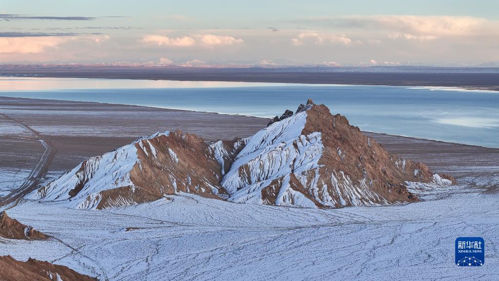 10月15日在阿爾金山國家級自然保護區拍攝的山峰和阿雅克庫木湖(無(wú)人機照片)。