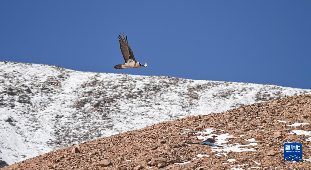 10月18日,在阿爾金山國家級自然保護區,一只胡兀鷲飛過(guò)阿木巴勒阿??采娇?。