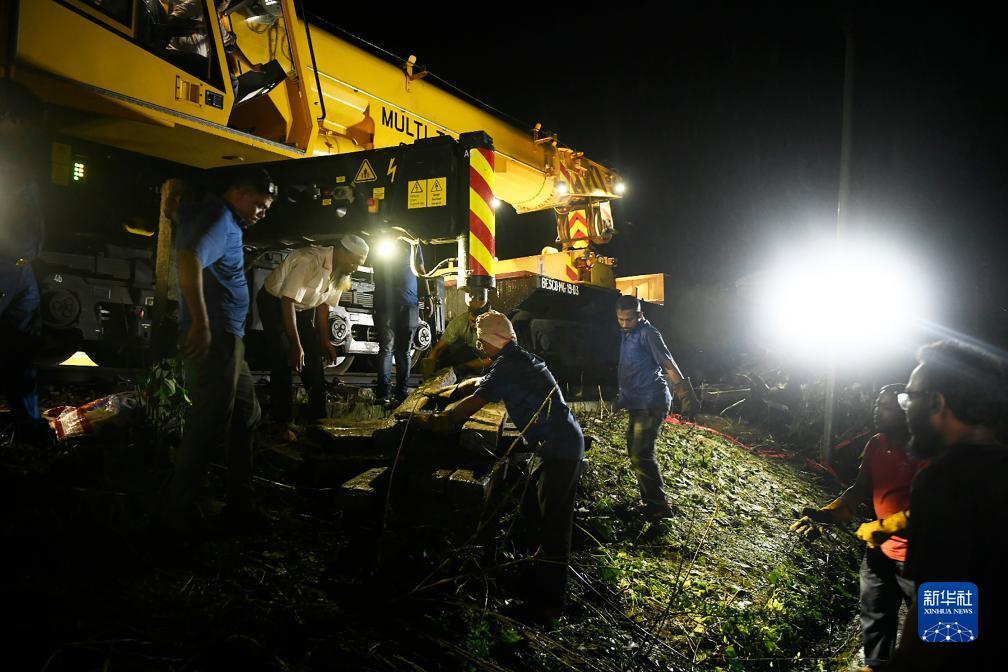 10月23日, 救援人員在孟加拉國吉紹雷甘杰地區火車(chē)相撞事故現場(chǎng)工作。