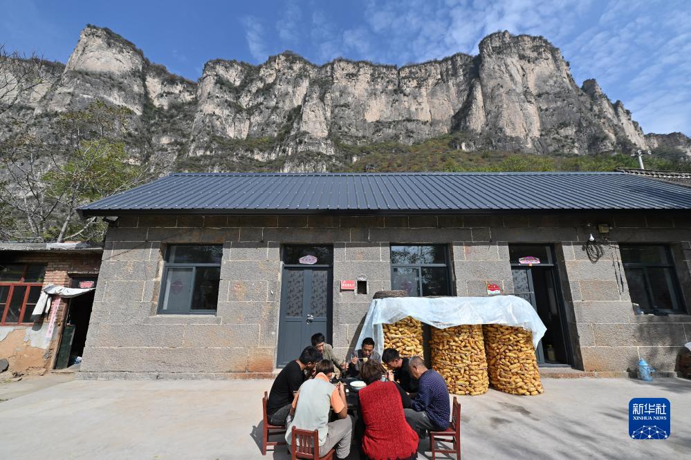 在壺關(guān)縣大峽谷鎮青龍峽村,村民們在吃午飯(10月17日攝)。