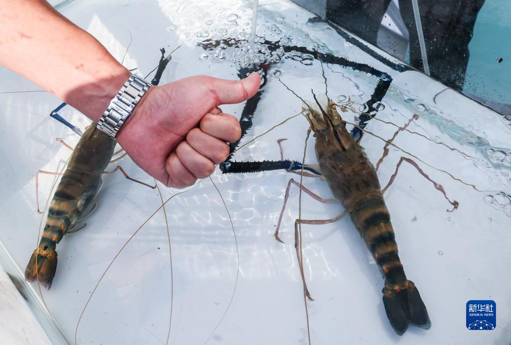 這是在湖州市織里鎮豐收節現場(chǎng)的農特產(chǎn)品嘉年華集市上展示的當地特產(chǎn)沼蝦(10月24日攝)。