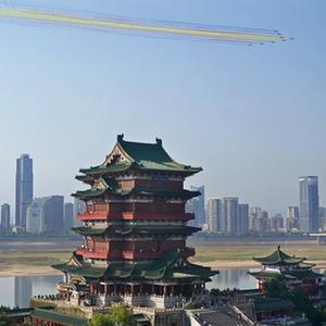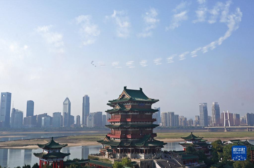 10月24日,歐洲環(huán)球之星特技飛行表演隊在南昌滕王閣景區上空進(jìn)行飛行表演。