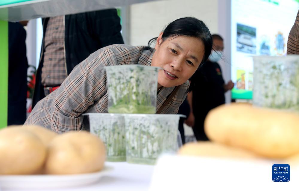 10月23日,觀(guān)眾在觀(guān)看馬鈴薯脫毒苗。