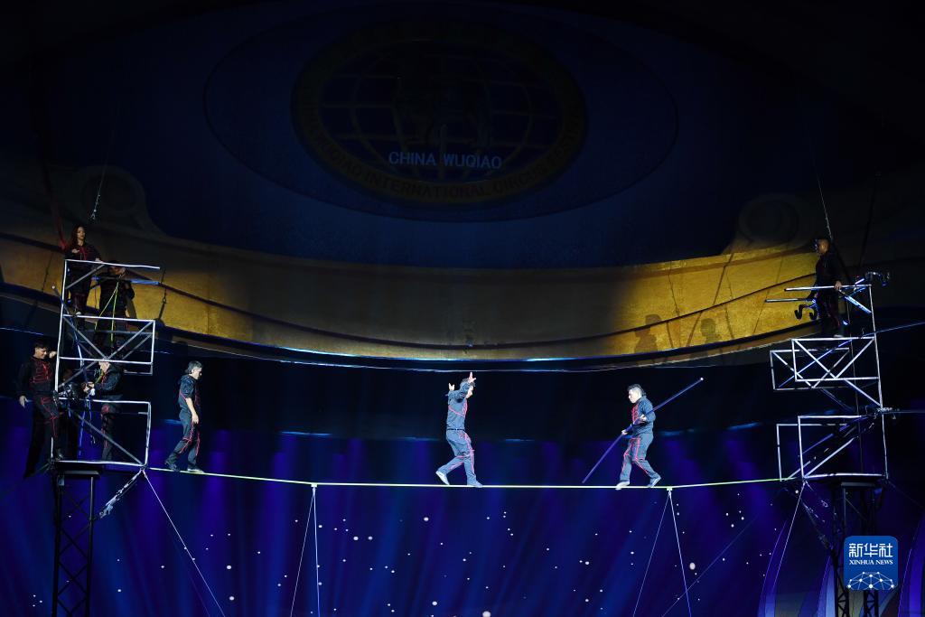 10月24日,來(lái)自阿根廷、哥倫比亞的雜技演員在表演《高空鋼絲》。
