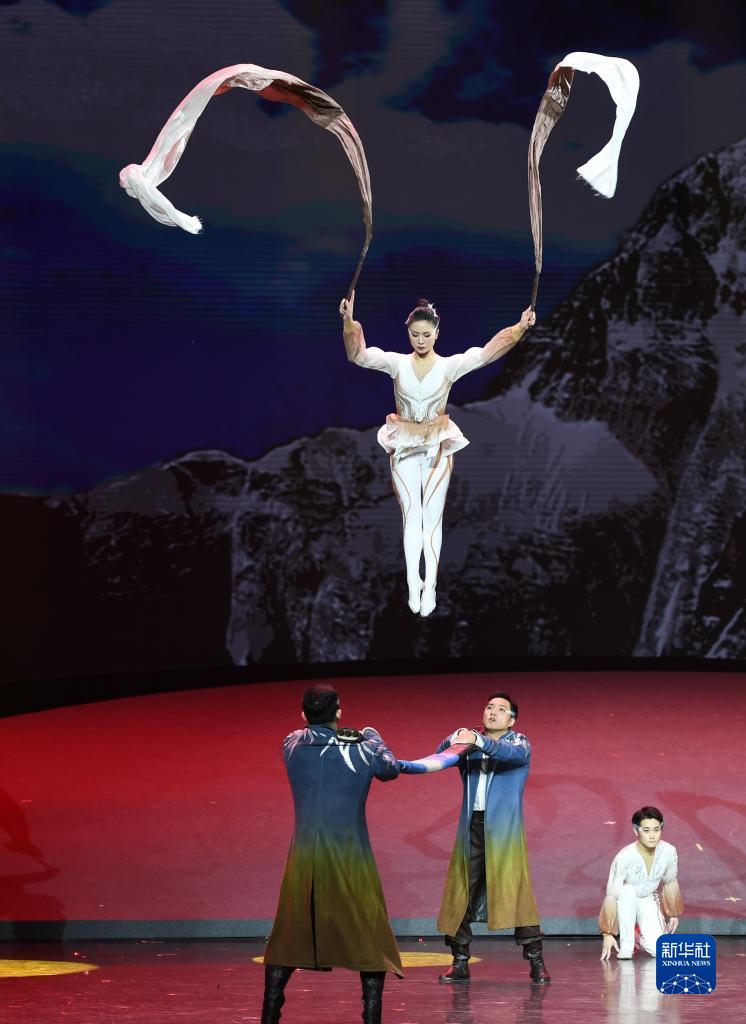 10月24日,中國雜技演員在表演《雄鷹—抖杠》。