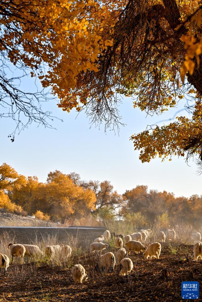 金秋時(shí)節,內蒙古自治區阿拉善盟額濟納旗的胡楊林披上“金裝”。