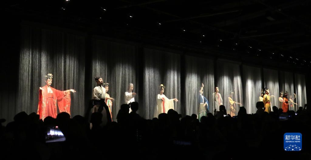 室內情景體驗劇《又見(jiàn)敦煌》在甘肅敦煌上演(2023年8月9日攝)。該劇以人物故事為脈絡(luò ),讓觀(guān)眾近距離感受古老敦煌的文化魅力。
