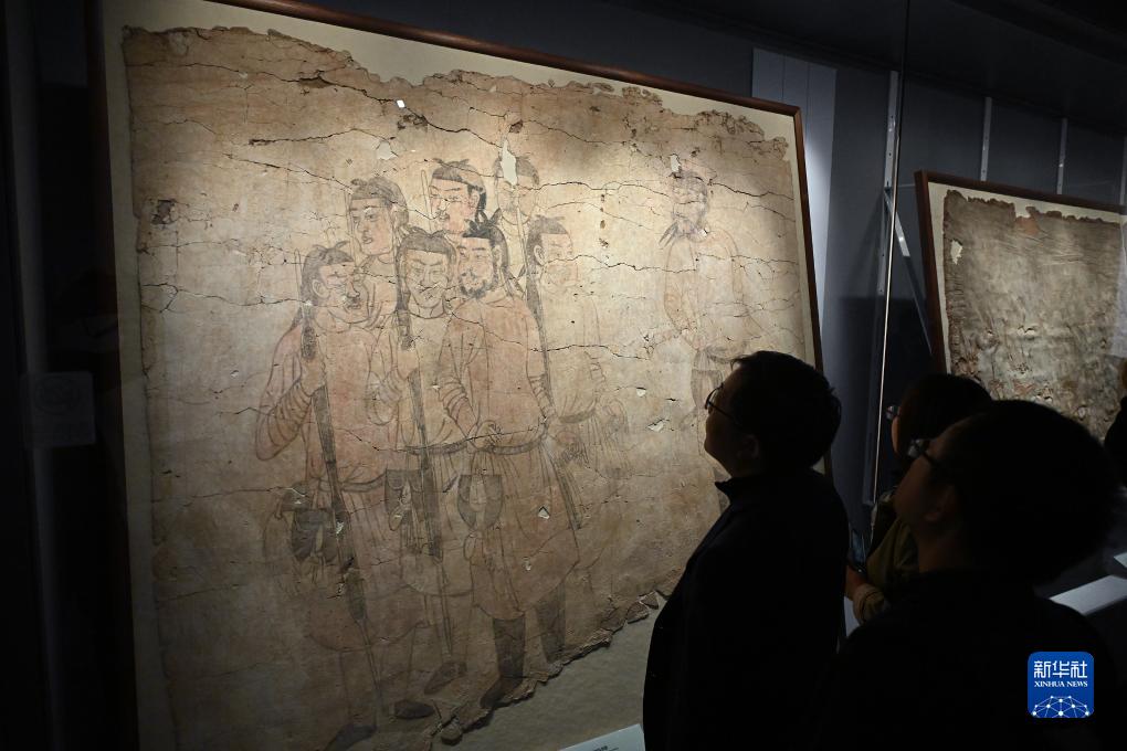 10月25日,參會(huì )者在陜西考古博物館內觀(guān)看陜西出土古代壁畫(huà)展。