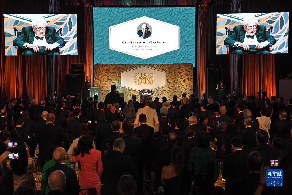 美中關(guān)系全國委員會(huì )24日在紐約舉行年度頒獎晚宴,兩國領(lǐng)導人向晚宴致賀信。晚宴向美國前國務(wù)卿基辛格頒獎,表彰他為中美關(guān)系發(fā)展所作的卓越貢獻。百歲高齡的基辛格在接受頒獎時(shí),全場(chǎng)嘉賓報以持久熱烈掌聲。他在獲獎致辭中說(shuō),“我一生中一半時(shí)間都在為美中關(guān)系工作”,美中之間的和平與合作至關(guān)重要,符合兩國和世界的利益?;粮窈粲趺乐袃蓢餐苿?dòng)雙邊關(guān)系重回正軌,“正如我50年前所相信的那樣,我們能找到克服困難的出路”。