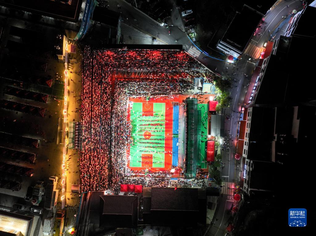 10月25日,夜幕中的臺盤(pán)村籃球場(chǎng)(無(wú)人機照片)。